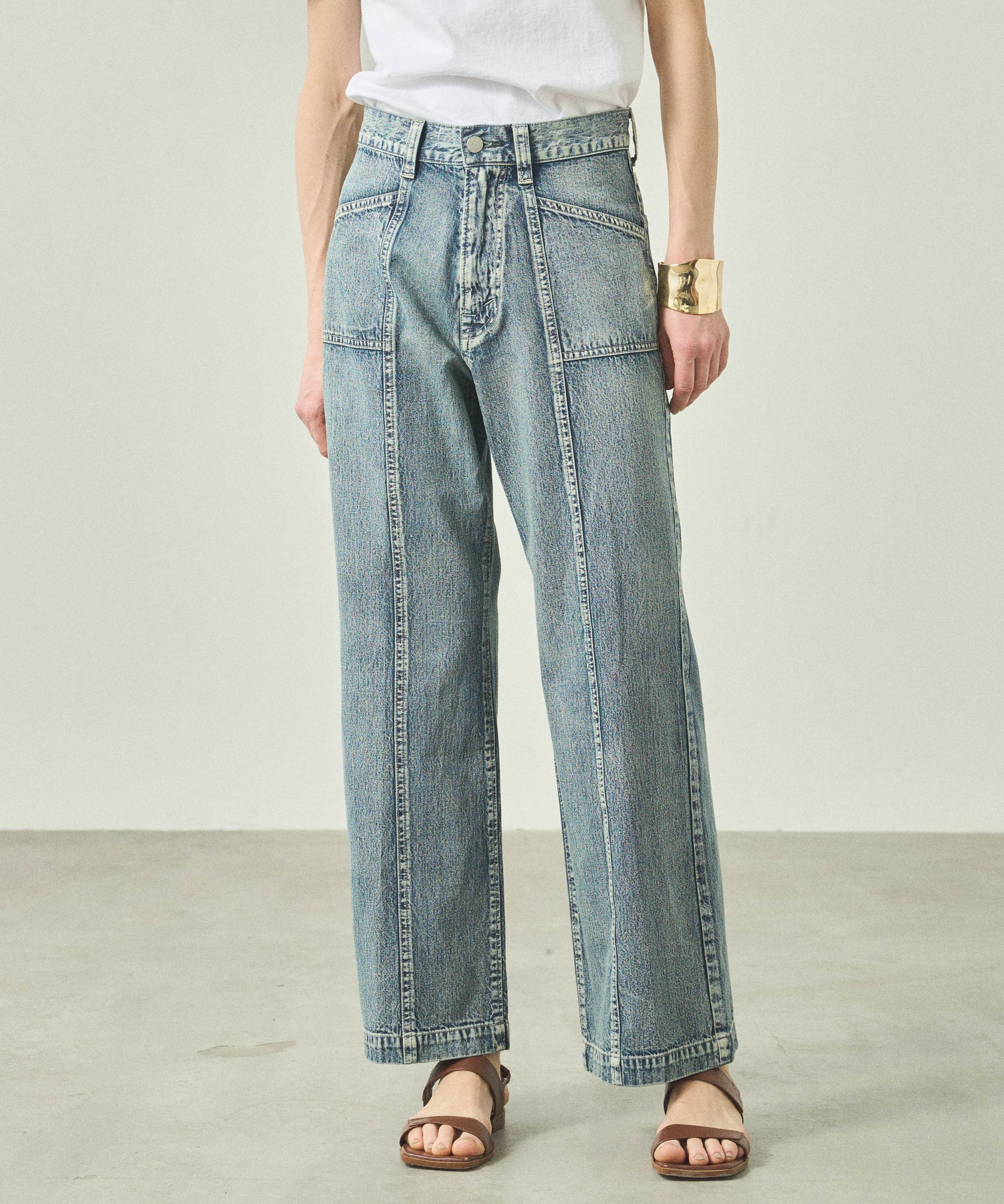 シャリ感のある8ozの綿麻デニムを使用し手の込んだヴィンテージ加工で仕上げています。