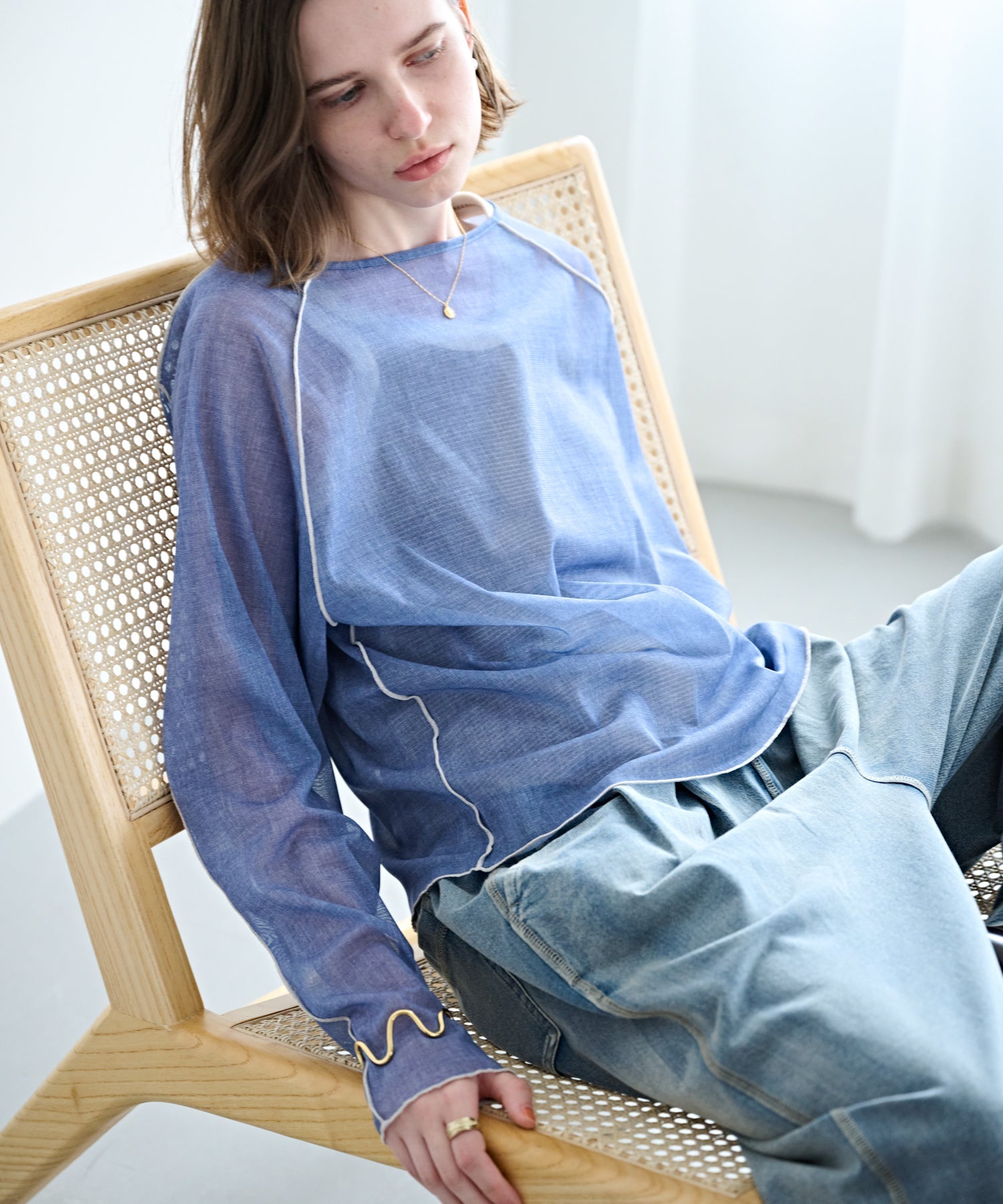 カラーステッチ シアートップ COLOR STITCH SHEER TOP