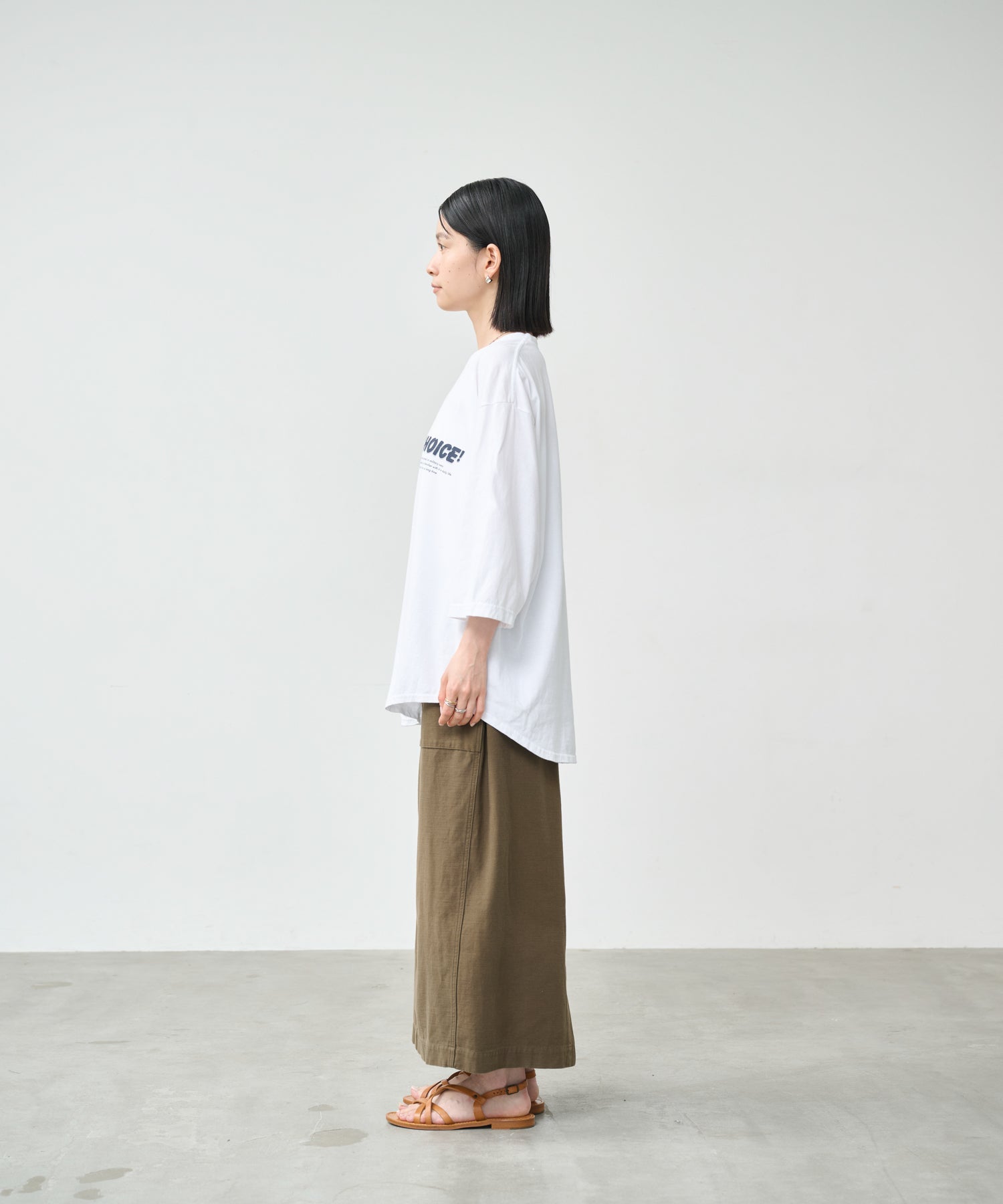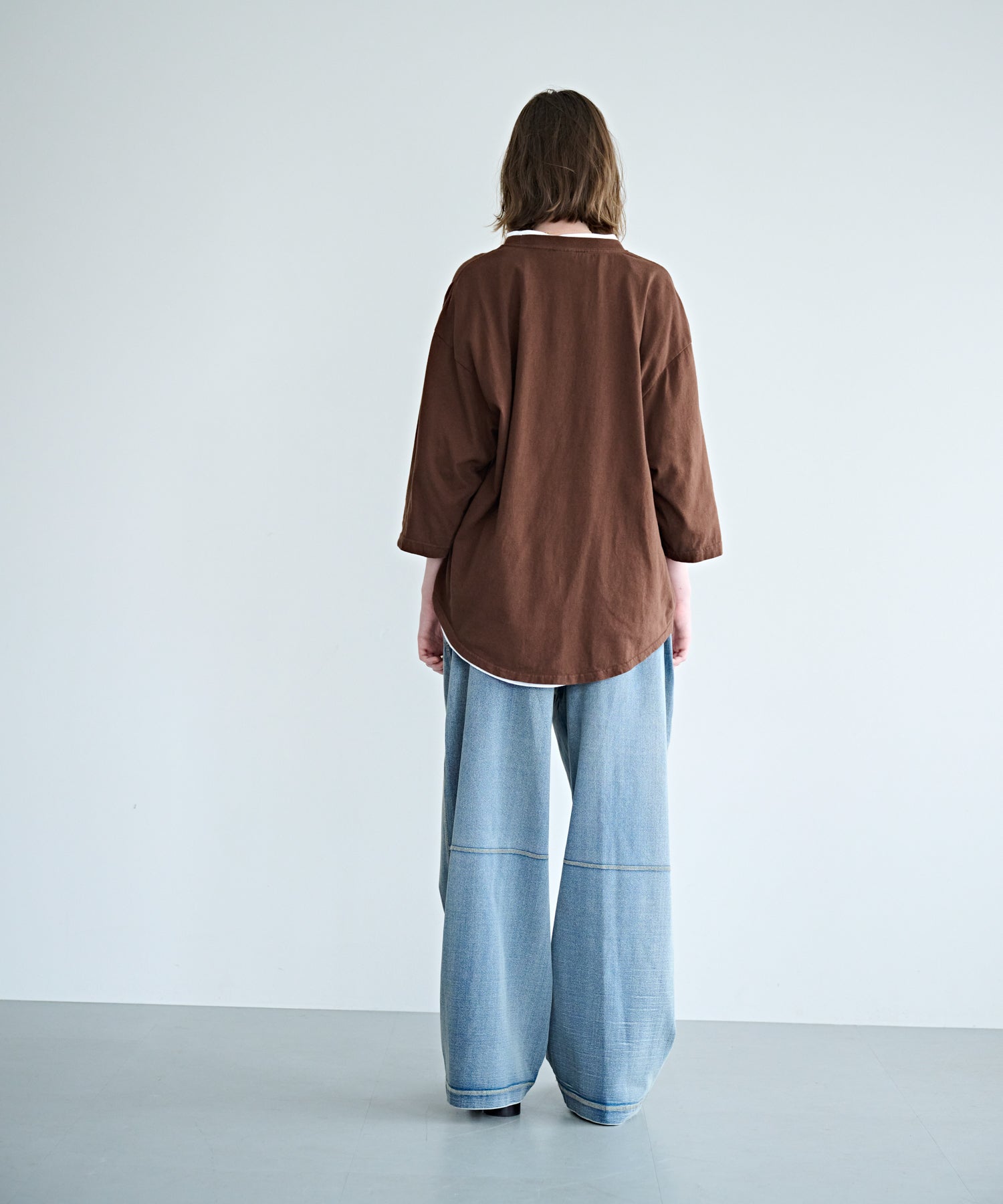 ゆるやかにカーブをつけたヘムライン、ゆったりとしたサイズ感の7分袖は風通しもよく長いシーズン着用可能。