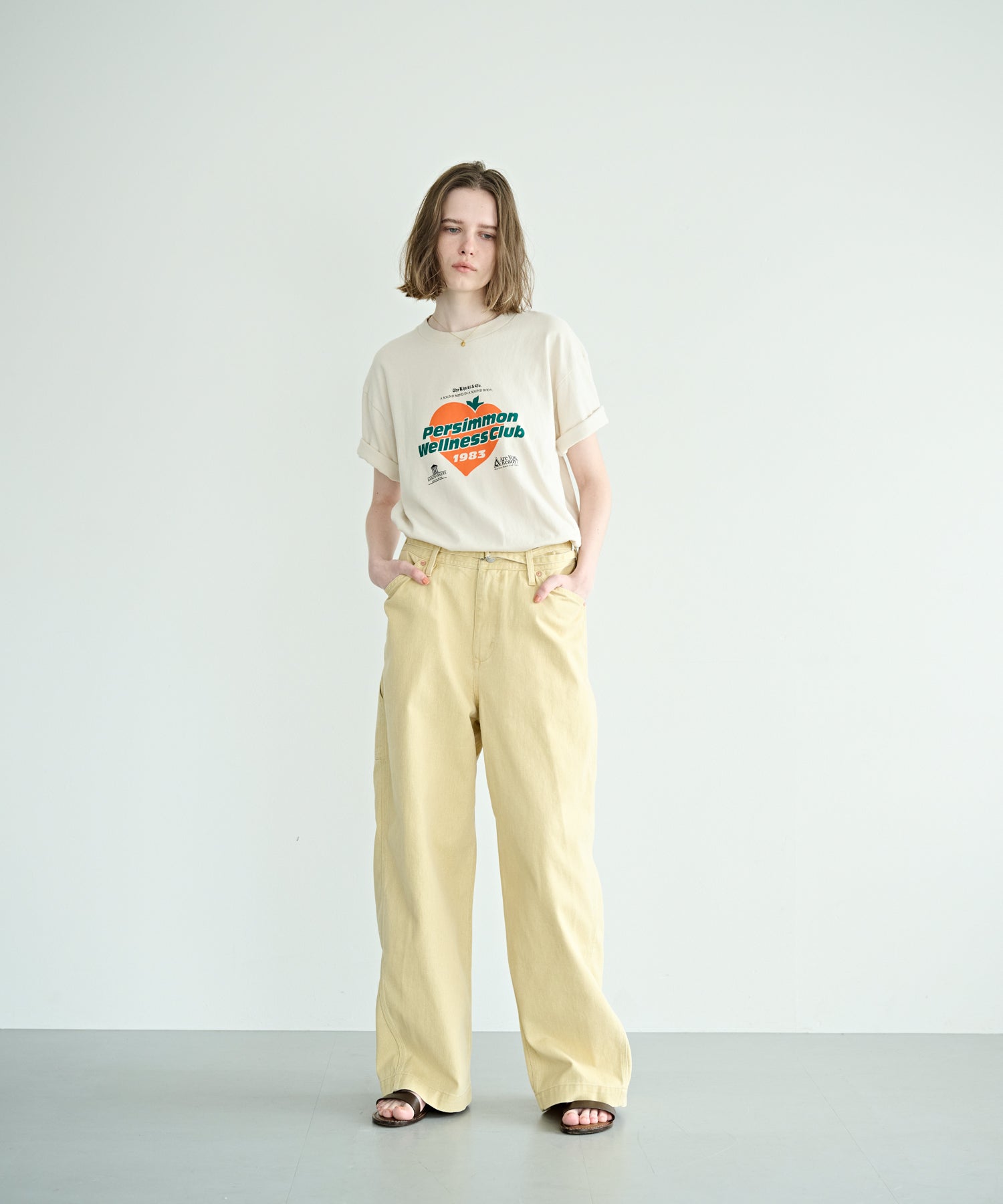 5.6ozのコットン天竺素材を使用し、プリント後に製品洗いを施すことで馴染んだ風合いに仕上げました。