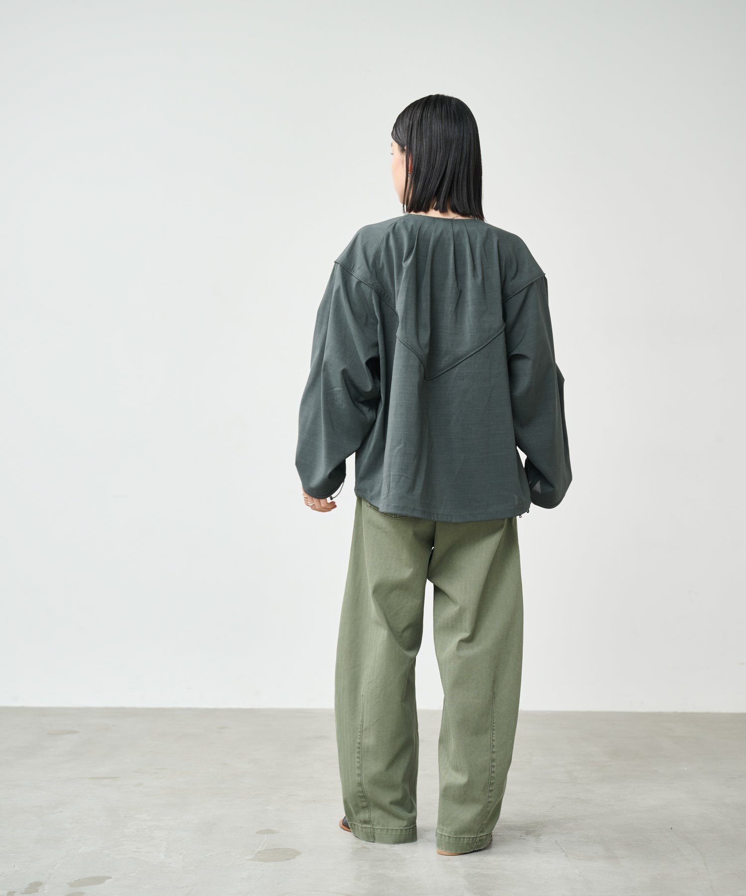 衿ぐりにタックを入れ立体的なフォルムに仕上げています。
