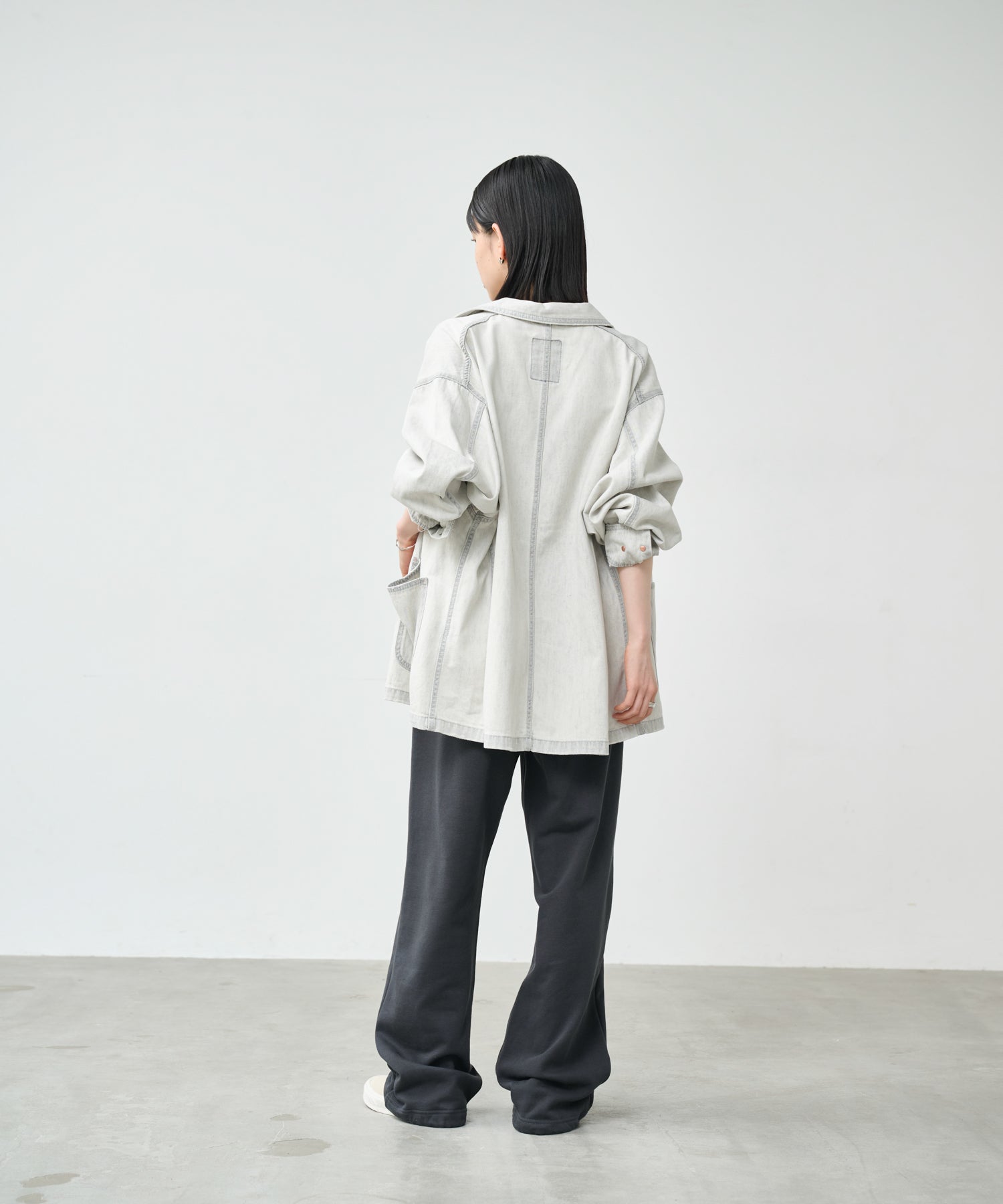 手の込んだステッチワークやポケットなど無骨なディティールとはギャップのある柔らかな風合いの8ozデニムを使用しています。